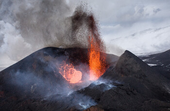 Консультативный центр по вулканическому пеплу в Тулузе (VAAC) сообщил, что фонтаны лавы в высоту достигают 300–400 м, высота пепельного столба составляет 7 000 м, а шлейф движется со скоростью 37 км в час в западном направлении. Учёные также сообщают о небольших взрывах в другом кратере.