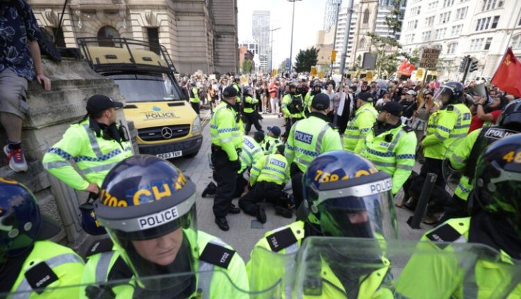 Также несколько полицейских пострадали в стычках с протестующими в Британии.